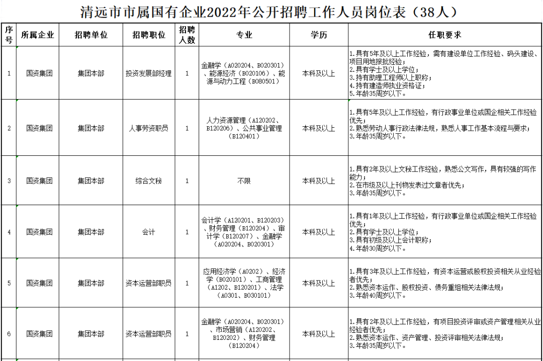 詳見(jiàn)清遠(yuǎn)市市屬?lài)?guó)有企業(yè)2022年公開(kāi)招聘工作人員崗位表。