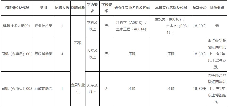 3.崗位為司機(jī)(辦事員),崗位代碼003,招聘對(duì)象為普通高等院校2022年大學(xué)?飘厴I(yè)應(yīng)屆畢業(yè)生。
