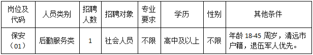 清遠(yuǎn)市清城區(qū)機關(guān)事務(wù)管理局因工作需要,根據(jù)《關(guān)于印發(fā)<清遠(yuǎn)市清城區(qū)機關(guān)事業(yè)單位專項工作聘員、合同制聘員以及后勤服務(wù)類人員管理辦法>的通知》(城區(qū)人社〔2022〕20號)文件精神,面向社會公開招聘后勤服務(wù)類人員1名,現(xiàn)將有關(guān)事宜公告如下: