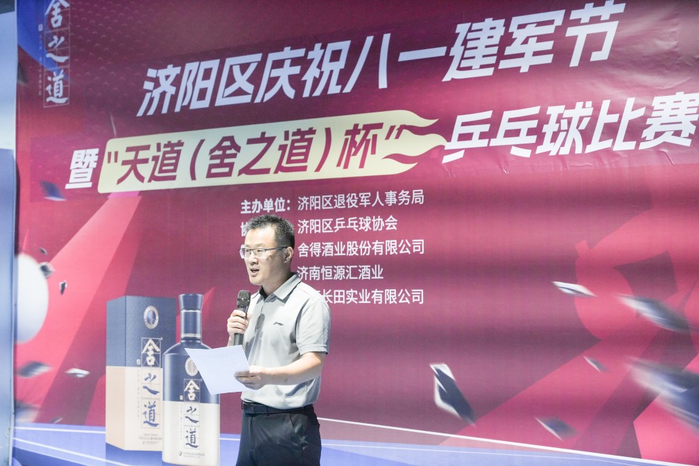7月27日上午,濟陽區(qū)文化藝術中心乒乓球館內熱鬧非凡,銀球在空中飛速穿梭,喝彩聲此起彼伏。由濟陽區(qū)退役軍人事務局主辦,區(qū)乒乓球協(xié)會承辦,濟南恒匯源酒業(yè)(舍得酒業(yè)股份有限公司)、濟南長田實業(yè)有限公司贊助的“慶祝八一建軍節(jié)暨‘天道 (舍之道) 杯’乒乓球比賽” 在此盛大啟幕。